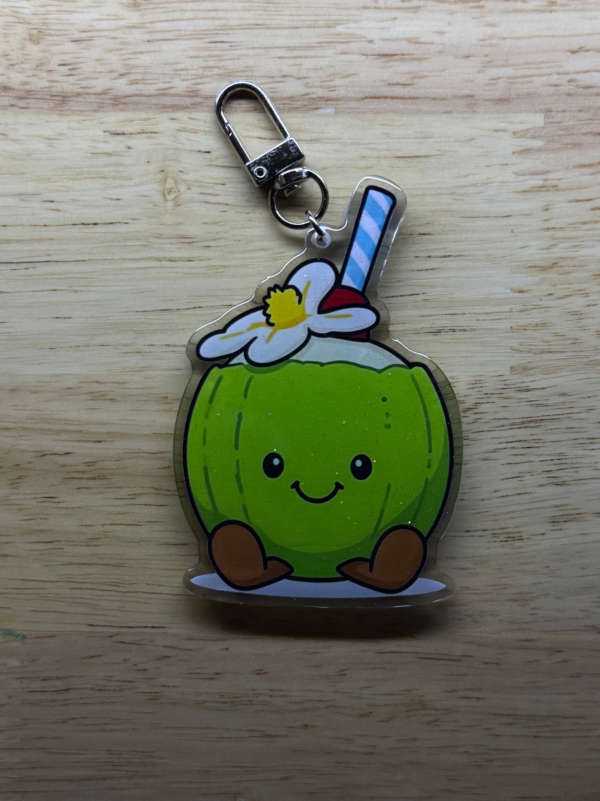- Double-sided acrylic keychain with glitter epoxy coating