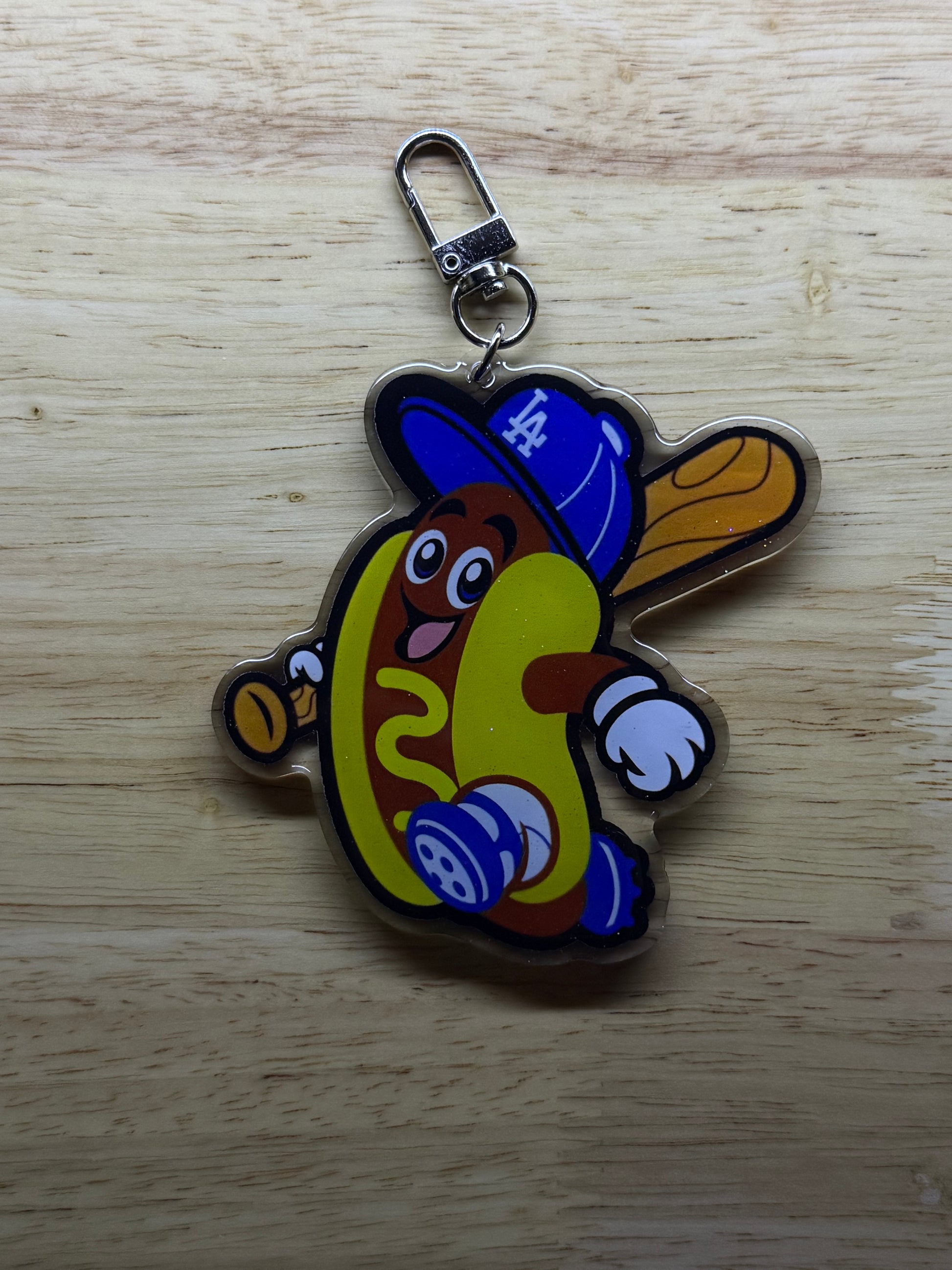 - Double-sided acrylic keychain with glitter epoxy coating