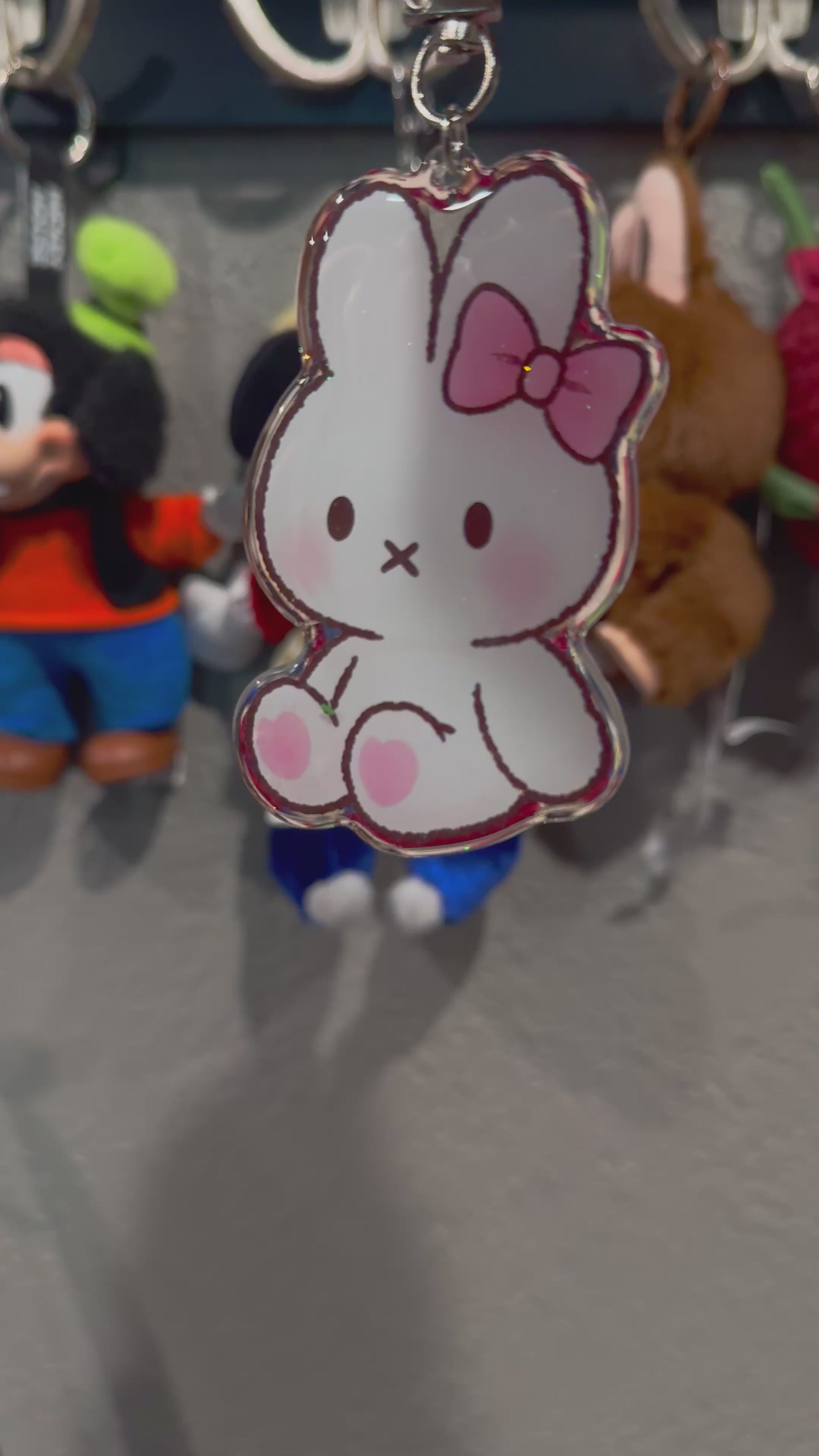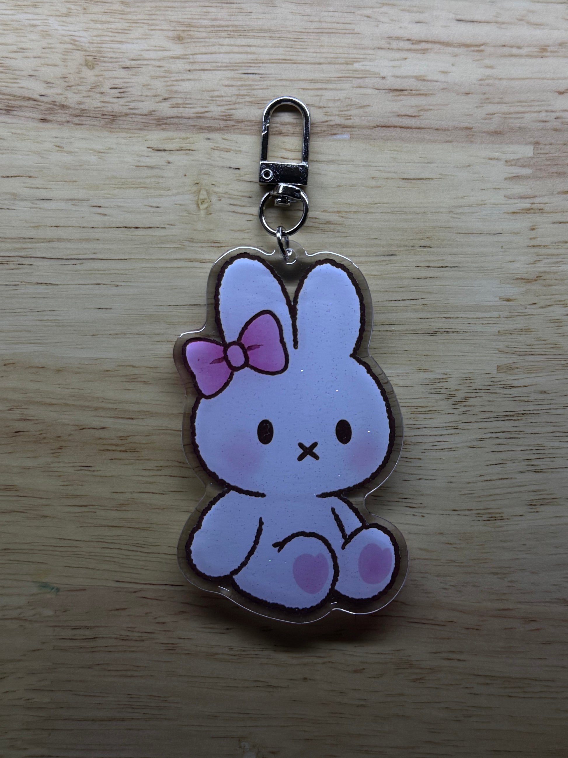 - Double-sided acrylic keychain with glitter epoxy coating